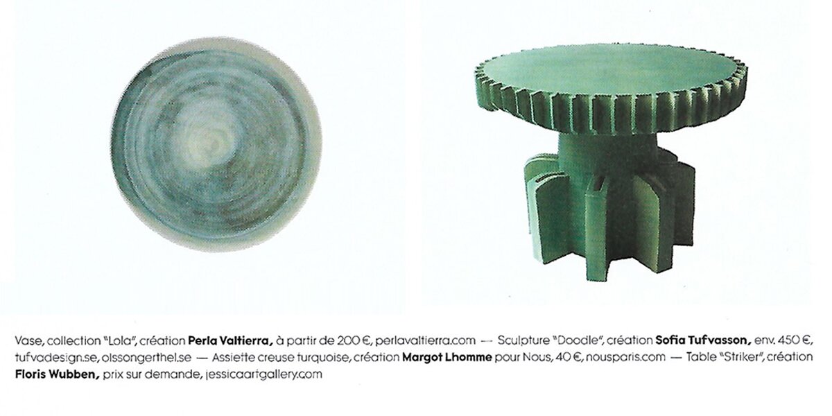Parmi nos coups de cœur, les créations en grès sobres et élégantes de Marion Graux ou la vaisselle rustique et épurée de Laetitia Di Gioia. »